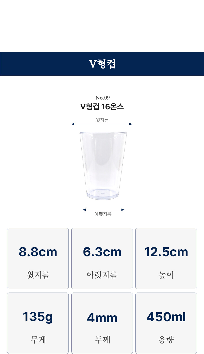 폴리카보네이트 물컵 투명 V형컵 16온스
